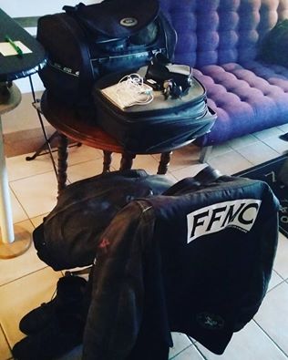 J’ai toujours avec moi une petite bombe de graisse à chaine, ainsi qu’une petite bouteille contenant du liquide lave vitre et un chiffon microfibre (ça s’est à force d’en avoir marre de courir après de l’eau pour laver ce fichu moustique qui s’écrase pile au milieu de la visière).